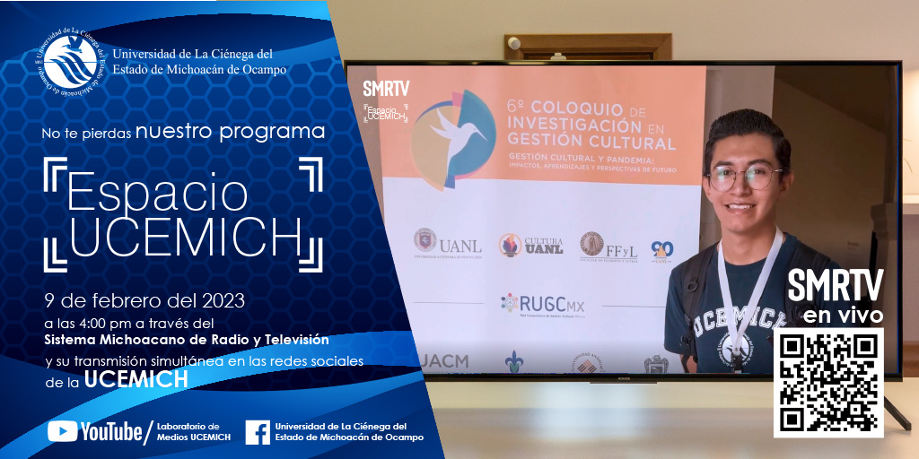 El cual se transmitirá el día viernes 09 de febrero del 2024, en punto de las 4:00 pm, mediante el Sistema Michoacano de Radio y Televisión (SMRTV) y de su transmisión de forma simultánea en las redes sociales de la UCEMICH.